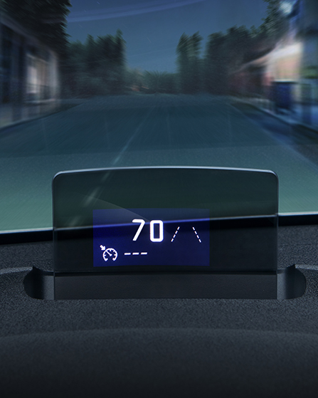 The new Heads-Up Display will allow you to have all key driving information without taking your eyes off of the road. In its digital transparent panel, you will be able to monitor information such as speed, navigation status and signal warnings (speed limits, range etc.)